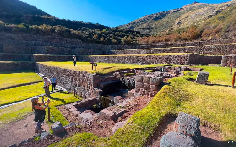 Nuestra primera visita será el Parque Arqueológico de Tipón, conocido por su avanzado sistema de canales y terrazas agrícolas. Este sitio es una joya de la ingeniería hidráulica inca, donde el agua fluye con precisión y armonía hasta la actualidad.